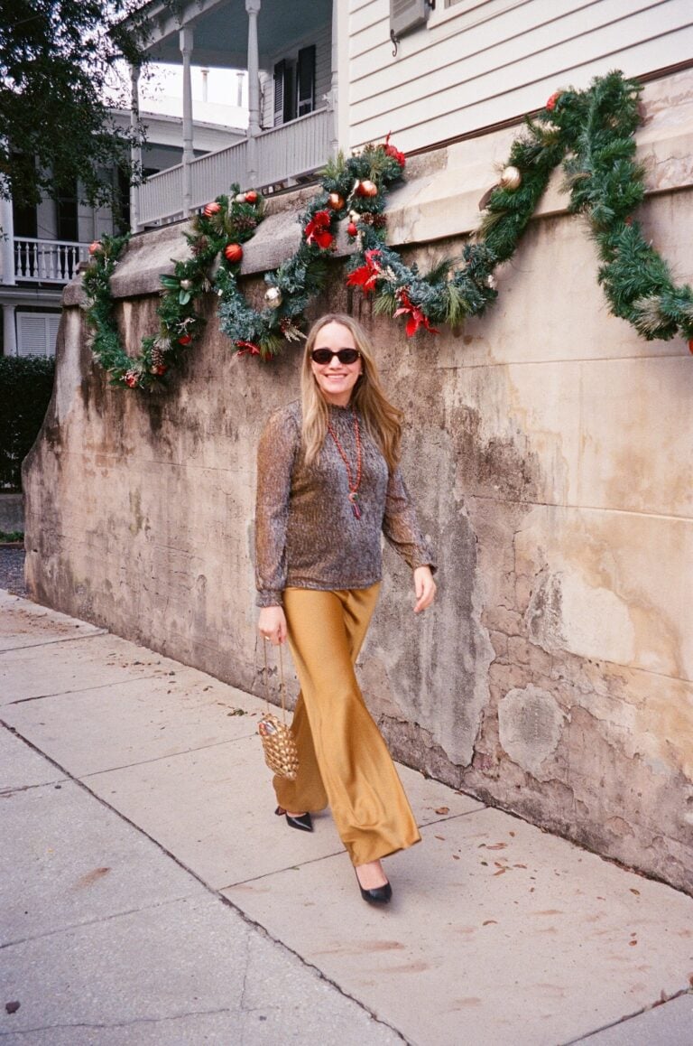 Tis the season of getting all dolled up! I have done a pretty good job managing my calendar and not overcommitting too much, and I feel proud of that! Still, I have a few nights a week where I am getting dressed up, in which case I have favorite outfit combinations I like to lean on. A matchy-matchy silk set (paired with structured accessories to keep it from looking like pajamas). A fabulous mini dress, tights, and heels. Flowy La Ligne satin Colby Pants with something fitted up top. I could go on, but I will just say, I hope this post inspires you while getting dressed up. Whether you treat yourself to a new party dress or accessory, or shop your closet and put things together you already own in a new way, it’s about having FUN. Because otherwise, what’s the point?