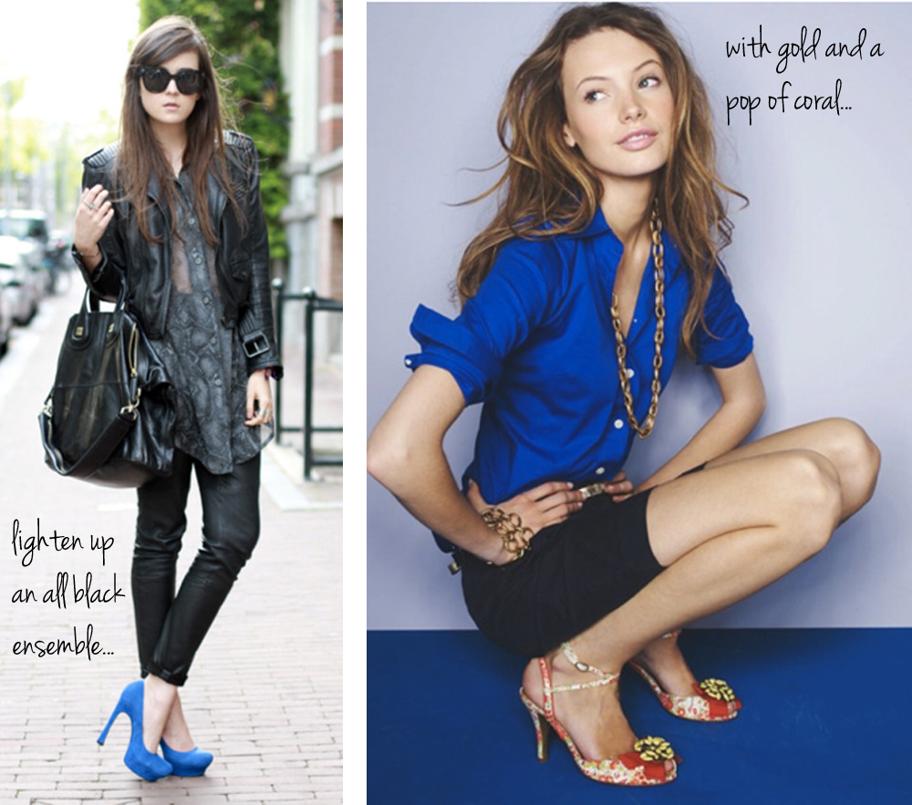 Cobalt is one of my most favorite colors (second only to green – Kelly or Emerald.) And there are oh so many amazing cobalt pieces in stores right now… sigh… So many ways to wear it… here are a few of my favorites!