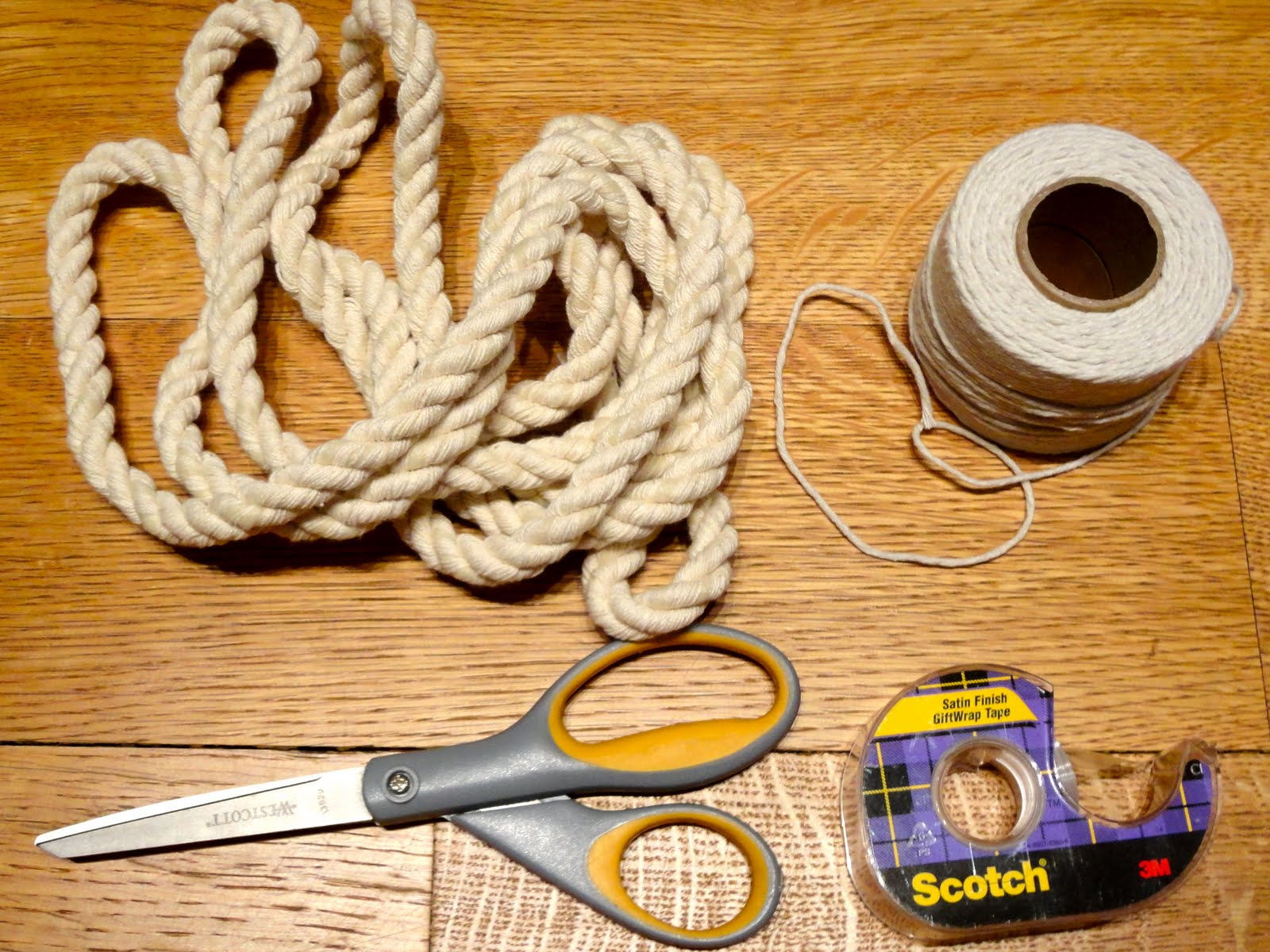 2 pieces of rope*, 35″ each. Tape the ends to prevent fraying