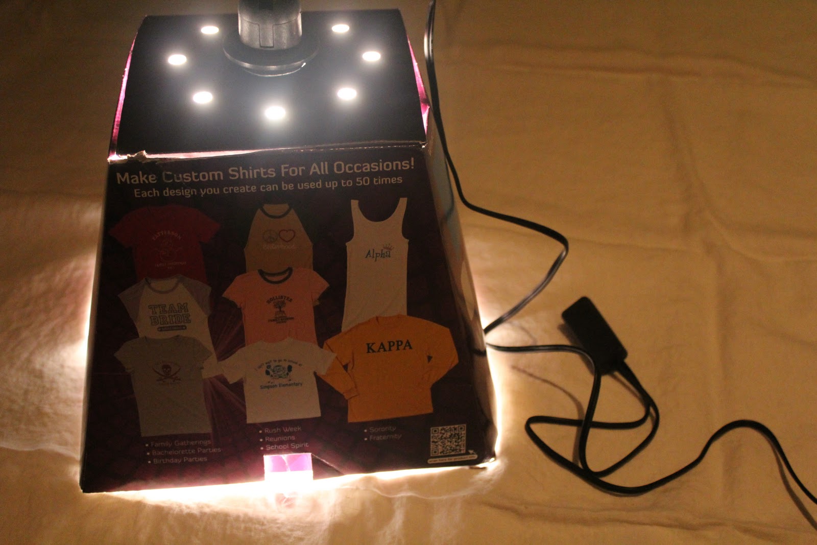 I then let put the design/screen into the light box, turned the light on, and let it “bake” for 25 minutes.