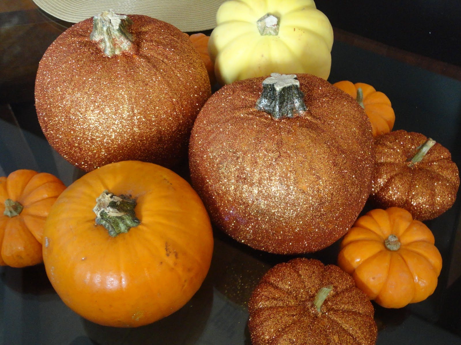 When I saw these glittery pumpkins on the blog Simply Irresistible, I knew I had to play copycat. You all know how much I love my glitter! Yesterday, my friend Remy and my sister came over and we had the best time coating our pumpkins in glitter and glue… here’s how they turned out! (I followed Lara’s exact directions – except I coated mine with a heavy coat of spray varnish to help prevent the glitter from falling off.)