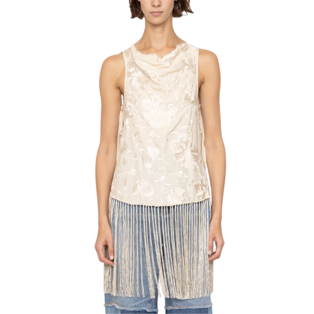 I wore this Zara top in LA for a fun anniversary dinner with my boyfriend (I wore it with these same Khaite jeans) and felt flirty and fun. My latest fringe acquisition is this top from Sea. I think this is my favorite of all my fringey pieces, as I like a little upper arm coverage. I am planning to experiment with layering this over a mini skirt and seeing what happens, wearing it with my Still Here jeans and Alaia flats, and of course, High Sport kick flares always (I am a creature of habit, what can I say!).