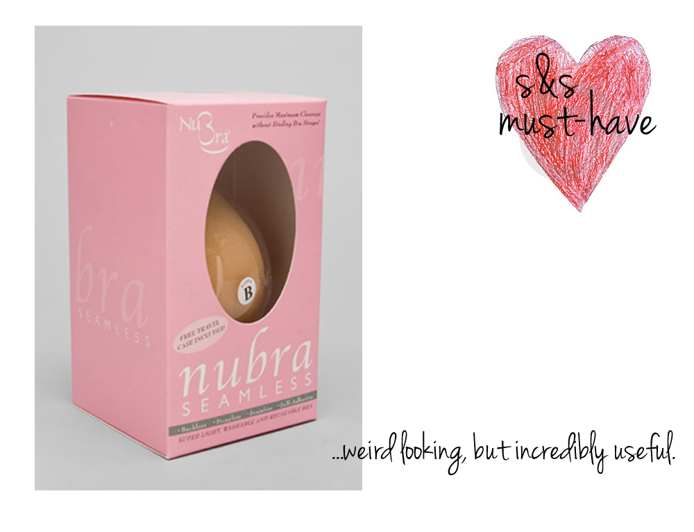 Today’s post isn’t about something pretty, bright, or fun, but it’s something you need. It was introduced to me by a friend a few years back, and truly fits into the life-changing products category. Meet the Nu Bra. Sure, it’s ugly as hell and even a little bit creepy looking, but will quickly become your new best friend for all of your strapless and backless needs.