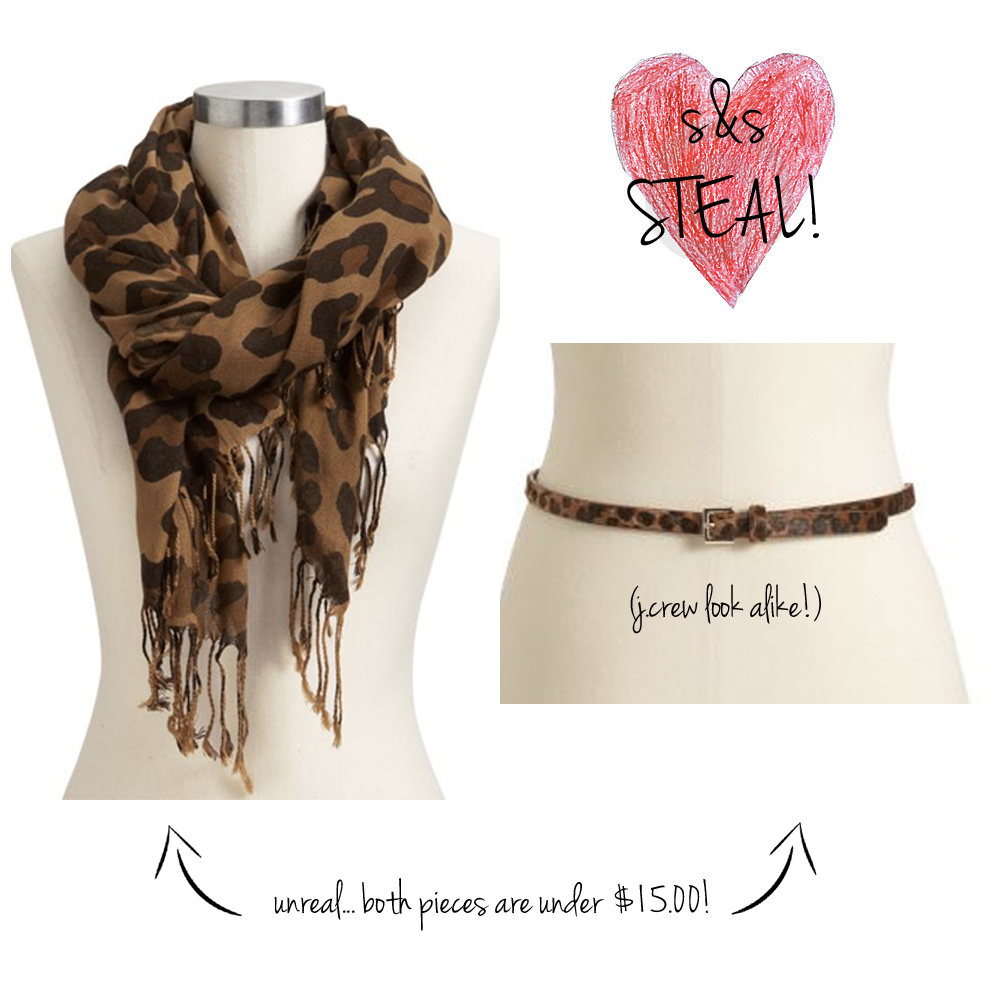 I’ve become obsessed with finding the perfect leopard accessories for Fall, and in my latest peruse of Old Navy, look what I found! The scarf is (in my humble opinion,) one of the best leopard patterns I’ve seen (so many others have a much smaller pattern which I don’t like as much, and the belt could totally be J.Crew or something even pricier!