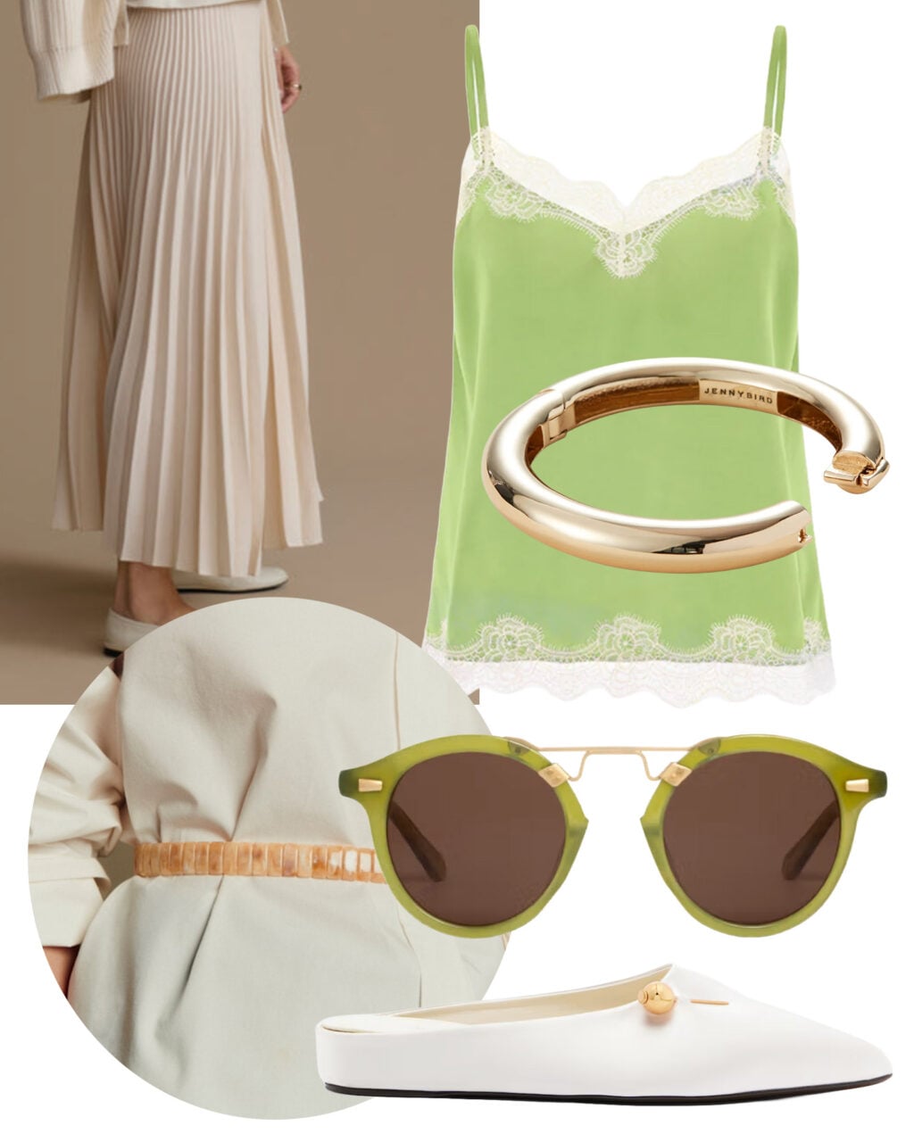 I love the idea of a really neutral outfit with just a few key pops of lime green: this lacy camisole, and of course the sunglasses that you guys keep buying.