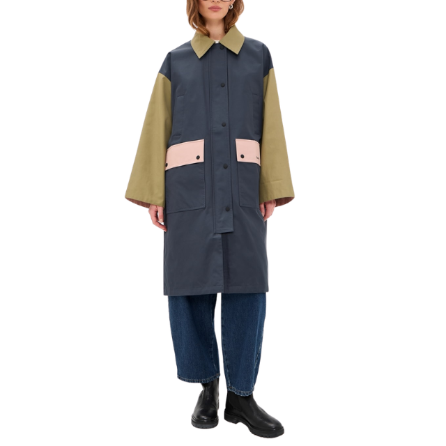 Wax-Coated TrenchThe mixed materials and textures is so good! Makes a simple coat way more interesting.Shop -