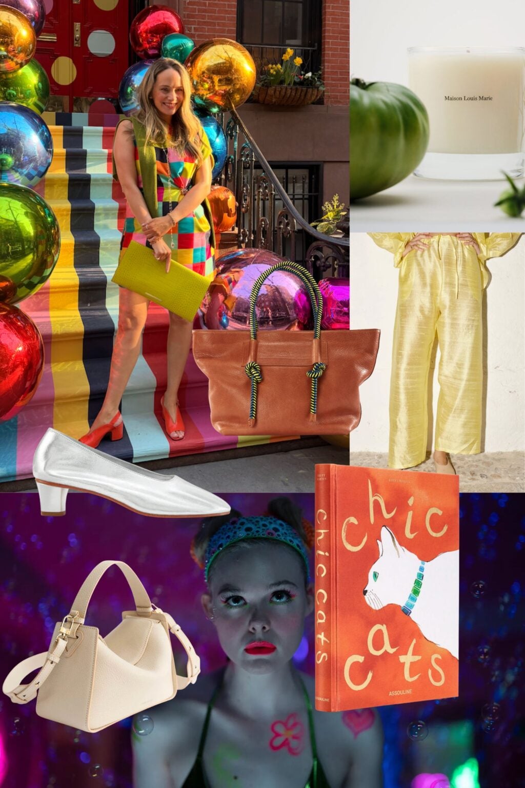 - Blair Eadie’s collection for Frances Valentine launched yesterday. It is extra fun, cheerful, and maximalist. If you have a party, you’ll want to check this out. I wore this rainbow checkerboard dress and this oversized clutch to her party.