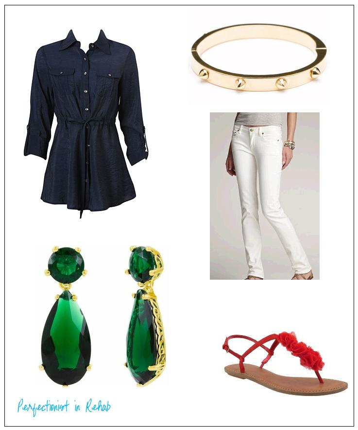 4.21.10 Uncategorized What I Wore Today… 1. Navy Blue Forever 21 Tunic (such a steal) 2. CC Skye Bracelet 3. J.Crew Matchstick White Jeans 4. Emitations Earrings 5. Gap Sandals The Forever 21 Tunic was an especially good find… The quality is not so bad at all and it’s adorable on.