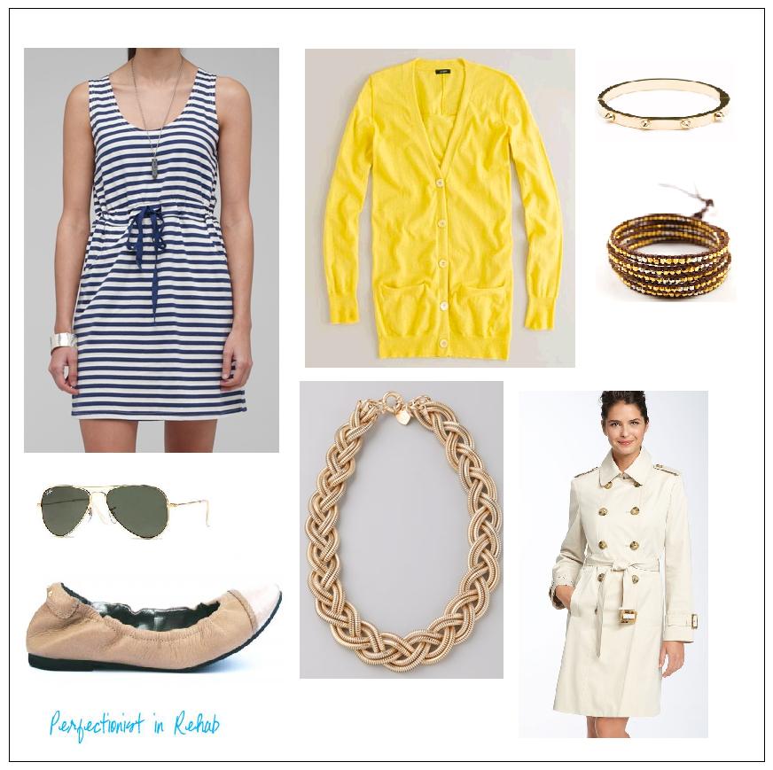 4.23.10 Uncategorized What I Wore Today… 1. Needs Supply Dress 2. Yellow J.Crew Cardigan 3. CC Skye Bracelet 4. Chan Luu Wrap Bracelet 5. Modo (Prescription!) Aviators 6. Matt Bernson Ballet Flats 7. Braided Rope Necklace 8. London Fog Trench Coat P.S. Life is SO much better with prescription sunglasses! It’s nice being able to read street signs.